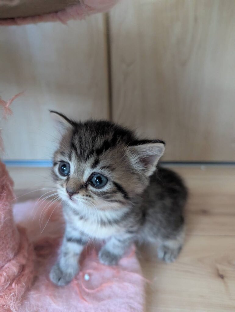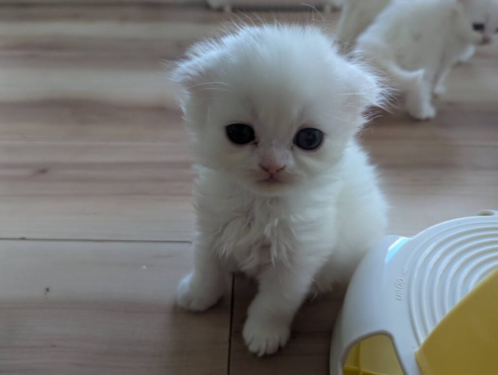 子猫誕生すくすく成長中です!!ケージから出て探索するようになりました。いまがヨチヨチ歩きでとってもかわいいです。性格がだんだん出てきました。すごくのんびり屋さんと好奇心旺盛さん、まったく違う性格なので見ていて面白いです。成長がたのしみです!!